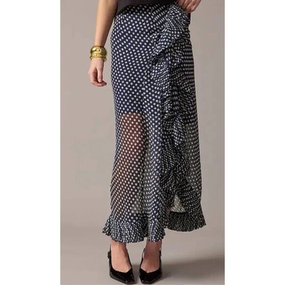 NWT J.CREW Navy & White Polka Dot Ruffled Midi Skirt Size 4