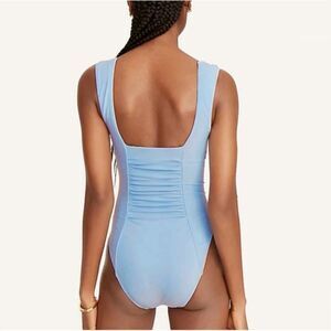 Trends: swimwear • bathing suit • summer • beach • vacation • surf • cruise • resortwear • ruched • square neck • squareneck • one-piece • ruching ▪︎ baby blue • pastel