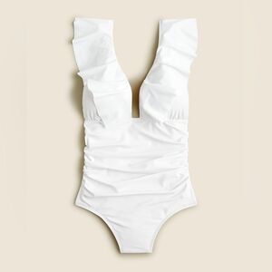 NWT J CREW Ruched ruffle one-piece swimsuit in white
