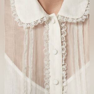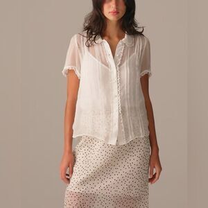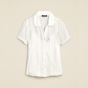 NWT J CREW Sheer lace-trim button-up shirt in Ivory Coast