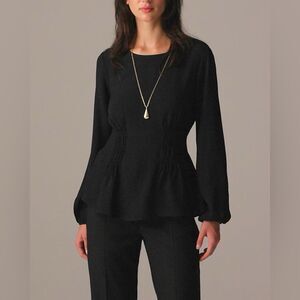NWT J CREW Shirred-waist top in viscose crepe in black