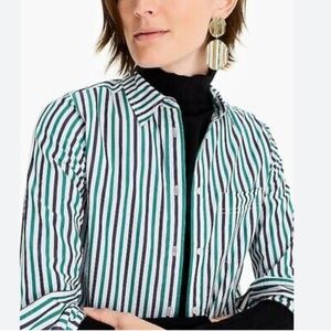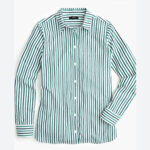 NWT JCREW WOMENS STRIPED BUTTON DOWN BOY FIT LOOSE SHIRT NAVY GREEN SZ 8 OFFICE