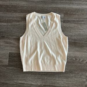 NWT J.Crew 100% Cashmere Sweater Vest Size Medium V-Neck Butter Cream Sleeveless