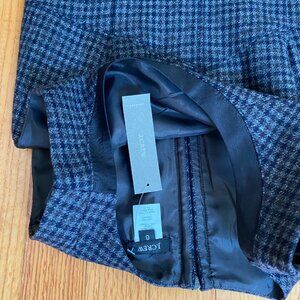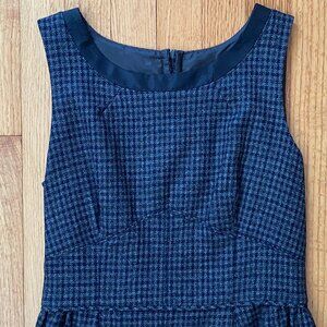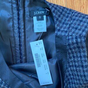New with tags. J. Crew. Houndstooth print pattern. Mini above the knee length. Crew neck, round neck. Sleeveless. Darts and pleats. Zip detail at back. Blue and grey, black. Lined.