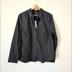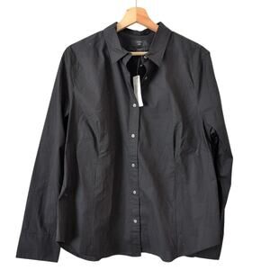 NWT J.Crew 365 Curvy Fit Solid Black Button Down Top Perfect Shirt Plus Size 18