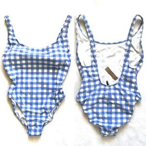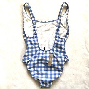 Beautiful and happy! NWT J.Crew Blue/white one piece swimsuit. Size 10, fully lined, no cups.