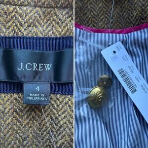 NWT J.Crew Bristol Double Breasted Blazer Jacket Herringbone English Wool Gold Brown Herringbone Size 4