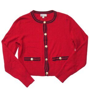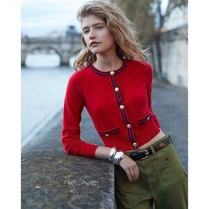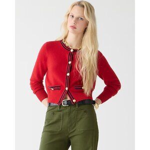 NWT J.Crew Cashmere Sweater Lady Jacket in Cardinal Red Navy Contrast Trim L