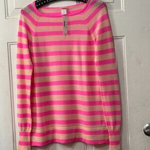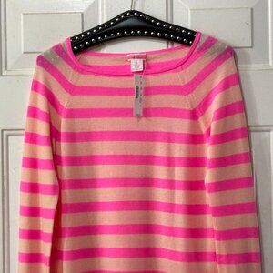 NWT J.Crew Cashmere Sz M Womens Sweater Pullover Neon Pink/Peach Striped