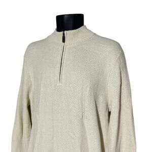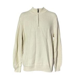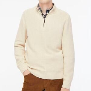 NWT J.Crew Cotton Honeycomb Knit Half-Zip Sweater in Natural Size L