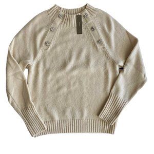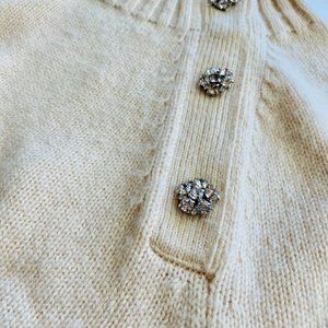 NWT J.Crew Crewneck lambswool sweater w/ jeweled rhinestone buttons size S Small