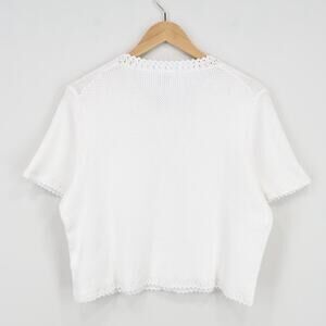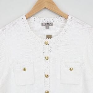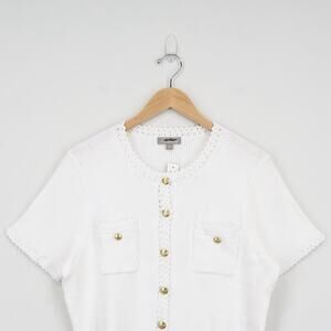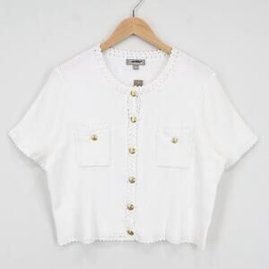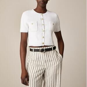 NWT J.Crew Cropped Short-Sleeve Sweater Lady Jacket Gold Buttons White Size XL