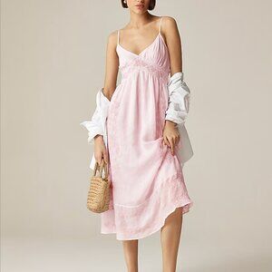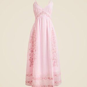 NWT J.Crew Embroidered Midi Slip Dress in Ramie Pink