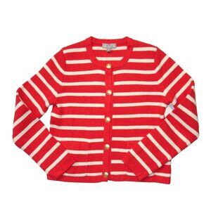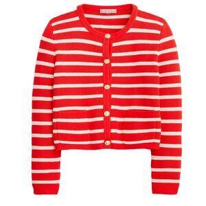 NWT J.Crew Emilie Sweater Lady Jacket in Red Ivory Stripe Knit Cardigan L