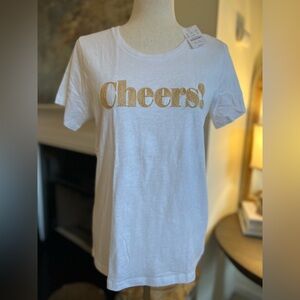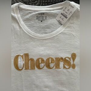 NWT!! JCrew Factory CHEERS! Collector Tee size medium. White with gold