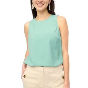 Freshen up your wardrobe with this polished sleeveless blouse from J.Crew Factory. In a soft mint green “Eucalyptus Steam” shade, it’s an easy piece that works from office to weekend. Designed with a clean crew neckline and chic covered button-back detail, this top is perfect for layering under blazers or wearing solo on warm days. Lightweight and versatile, it transitions effortlessly from spring gatherings to summer travel.