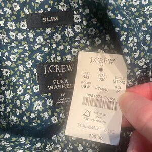 NWT J.Crew Factory Sz M Flex-Washed Slim Fit Button Down Shirt Navy Floral Print
