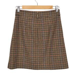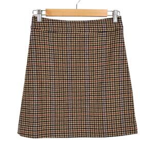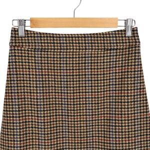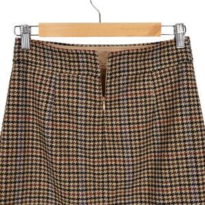 NWT J.Crew Factory Wool-Blend Lined Mini Skirt In Houndstooth Brown Size 0
