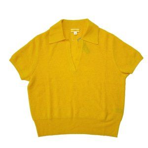 NWT J.Crew Featherweight Cashmere Collared Short-sleeve Sweater in Warm Maize L
