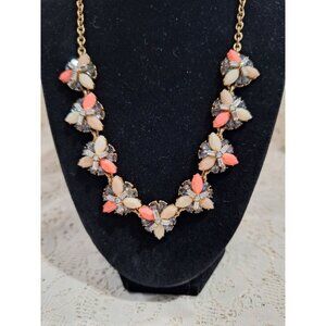 NWT J.Crew Gold-Tone Statement Necklace With Coral & Cream Floral Motif