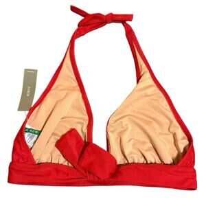 NWT J.Crew Halter Tie Bikini Top Small Red Lined Beach Swim Classic Ocean UPF