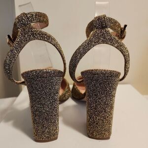 -3.75" chunky heel is covered in gold lurex