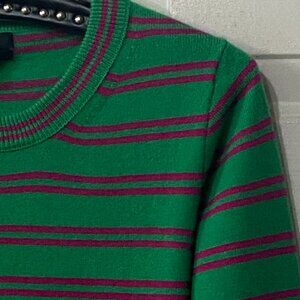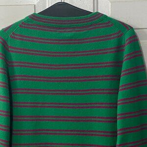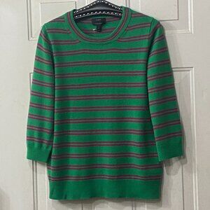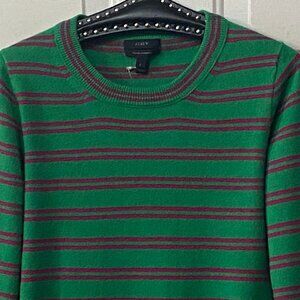 NWT J.Crew Italian Cashmere Sz L Sweater Pullover 3/4 Sleeve Green/Pink Striped