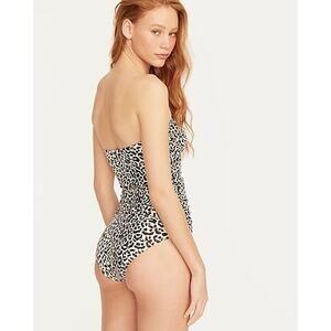 NWT J.Crew Leopard Print Bandeau Ruched One Piece Halter Swimsuit 0 Brown #2886