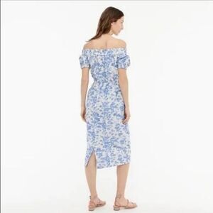 NWT J.Crew Off-Shoulder Midi Dress in Blue & White Antique Ikat Floral Size 8