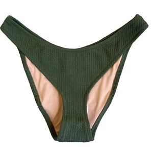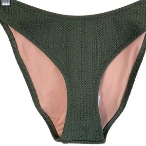 NWT J.Crew Olive Green Scrunchie Textured Curved Waist Cheeky Bikini Bottom Sz M