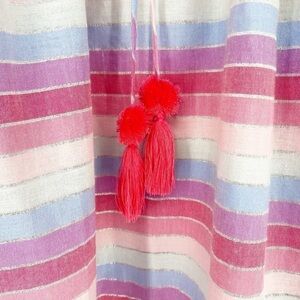 A couple things to love about this top: the bright, summer-perfect stripe, the hint of metallic thread, the cute tassel ties, the supereasy silhouette.