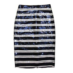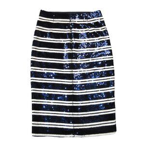 NWT J.Crew Pencil in Navy White Sequin Stripe Straight Skirt 0