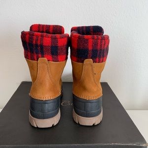 J.Crew Perfect Winter Boots.They are super warm and cozy. However, they run a little small. Nubuck upper. Faux-fur lining. Rubber sole.