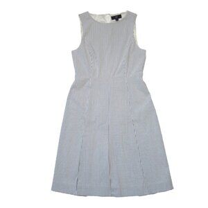 NWT J.Crew Pleated A-line in Blue White Stripe Stretch Seersucker Dress 16