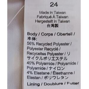 Features: one shoulder, built in shelf bra with removable pads, one piece, blue & white pinstripe, ruched on side, searsucker stripe, made with recycled polyester