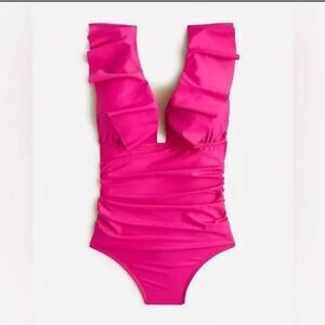 NWT J. Crew Ruched Ruffle One Piece Swim Suit Fuchsia Pink Beach BP222 Size 4