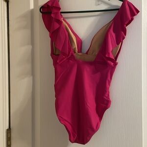 New With Tags J.Crew Ruched Ruffle One-Piece Swimsuit Magenta Orchid 0