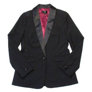 Details: * Inspired by a classic men's tuxedo jacket, this style is expertly tailored and the perfect holiday-party layer. Front button closure. Shawl collar. Long sleeves with button cuffs. Side flap welt pockets. Back vent. Lined. Dry clean. Imported. *