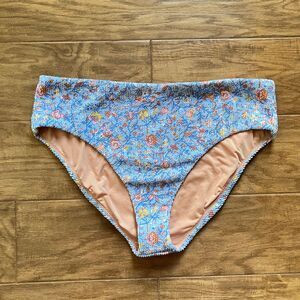 NWT J.Crew Scrunchie High-Rise Bikini Bottom Size 2X Blue Floral Textured