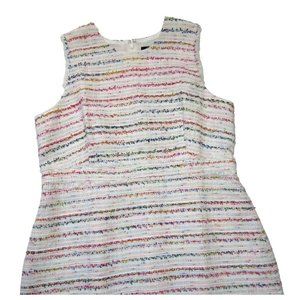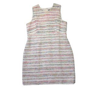 NWT J.Crew Sheath in Ivory Rainbow Multi Tweed Sleeveless Fringe Dress 18