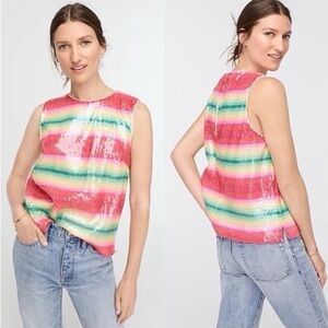 NWT J.Crew Sleeveless Top Watermelon Stripe Sequins Size Medium