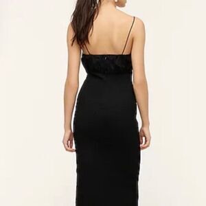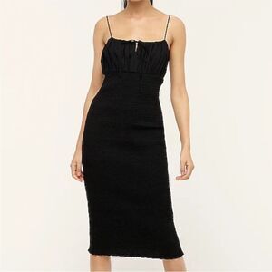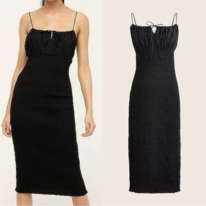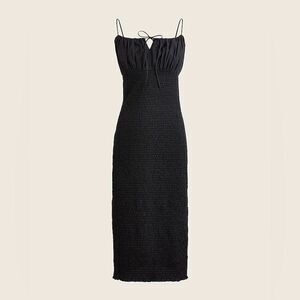 NWT J Crew Smocked Tie Front Black Linen Midi Dress