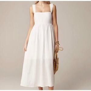 NWT J.Crew Squareneck Midi Dress In Linen In White Size 12