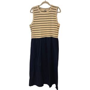 NWT J.Crew Striped Ribbed Knit Mixy Dress Navy Blue Size XL