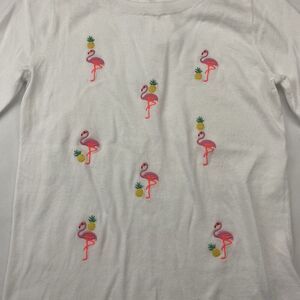 NWT J.Crew TEDDIE White Flamingo Pineapple Crew Neck Sweater 100% Cotton XS $79