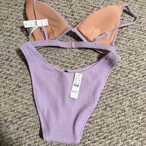 NWT J. Crew Textured plunge bikini top & curved-waist cheeky bottom- Size Medium