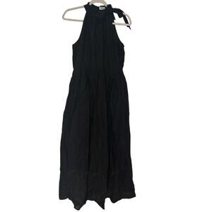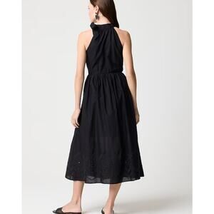 NWT J.Crew Tie Neck Midi Dress With Eyelet Dress Black Size 10