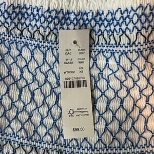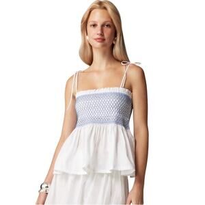 NWT J.Crew White Smocked Peplum Top XS Tie-Strap Blue Embroidery Poplin