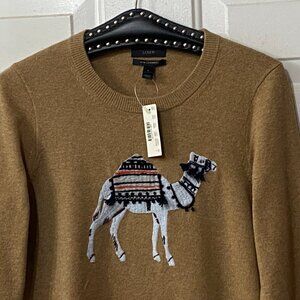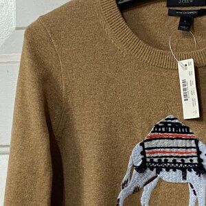 NWT J.Crew With Cashmere Sz L Sweater Pullover Camel Embroidered 3/4 Sleeve