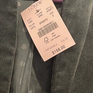 NWT J.Crew Womens Dark Green Velvet Blazer Sz 2 Slim Fit 98% Cotton Polka Dot